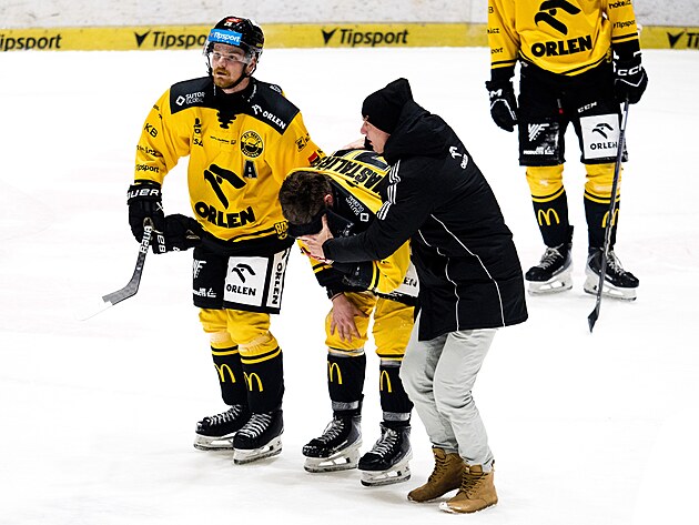 V závěru zápasu musel po nešťastném zásahu pukem do obličeje odstoupit domácí mladík Maštalířský. Podobně jako nedávno Michal Gut. Lékař Maštalířskému tvář zakryl ručníkem, neboť z něj crčela krev. „Nebyl to příjemný pohled, přejeme mu, ať nejbližší hodiny zvládne,“ vzkázal kouč. „Bohužel další podobné zranění během tří zápasů, štěstěna nám nepřeje.“