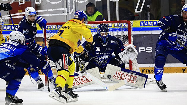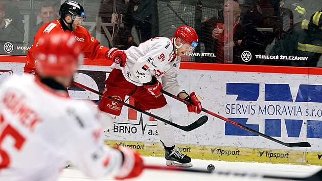 - Flynnovu šťastnou trefu. Za brankou přebral puk a chtěl najít jednoho ze svých spoluhráčů, ale místo toho se vzápětí jel rovnou radovat. Třinecký Oscar Flynn svou přihrávku totiž trefil do brusle bránícího Jakuba Orsavu, od něj se puk odrazil do sítě. Byla to jediná a tedy vítězná branka utkání s Olomoucí.