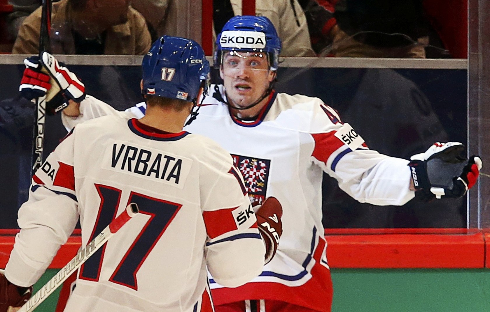ČLOVĚČE, JÁ HO DAL. Petr Koukal s poněkud překvapeným výrazem slaví branku s Radimem Vrbatou.