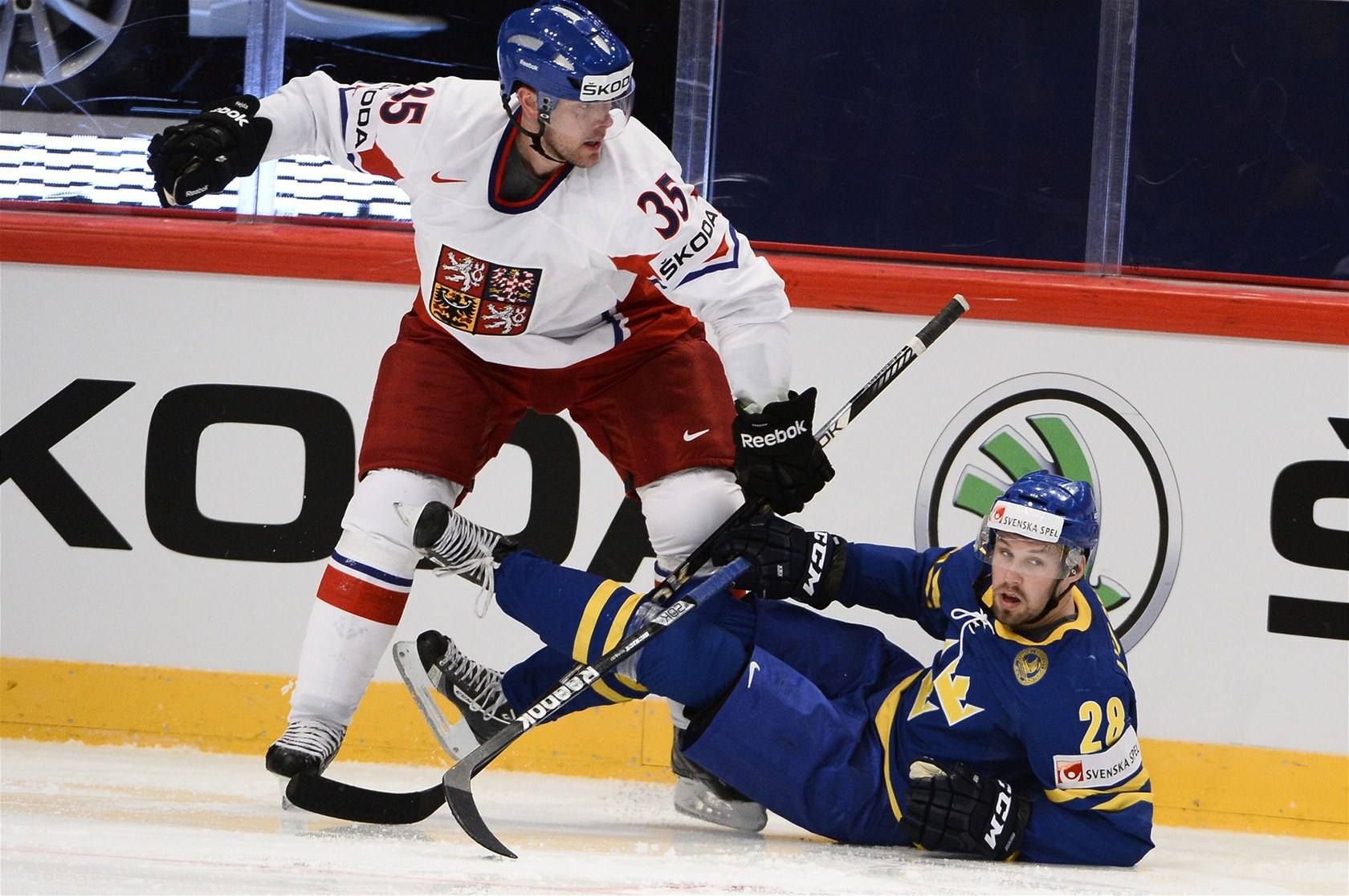 Jan Hejda na mistrovství světa 2013 v zápase proti Švédsku