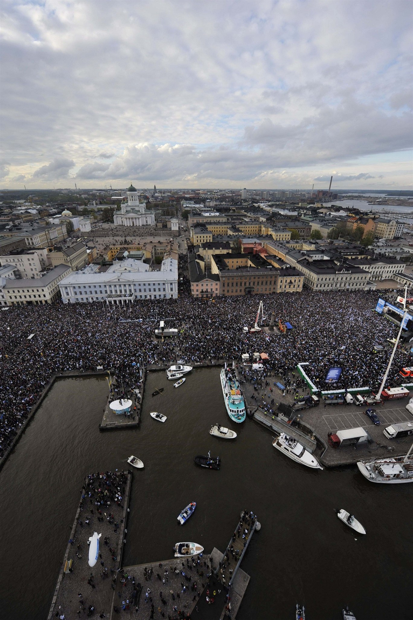 PLNÉ ULICE. Helsinky, Turku, Oulu... Všechna finská města se zaplnila hokejovými fanoušky.