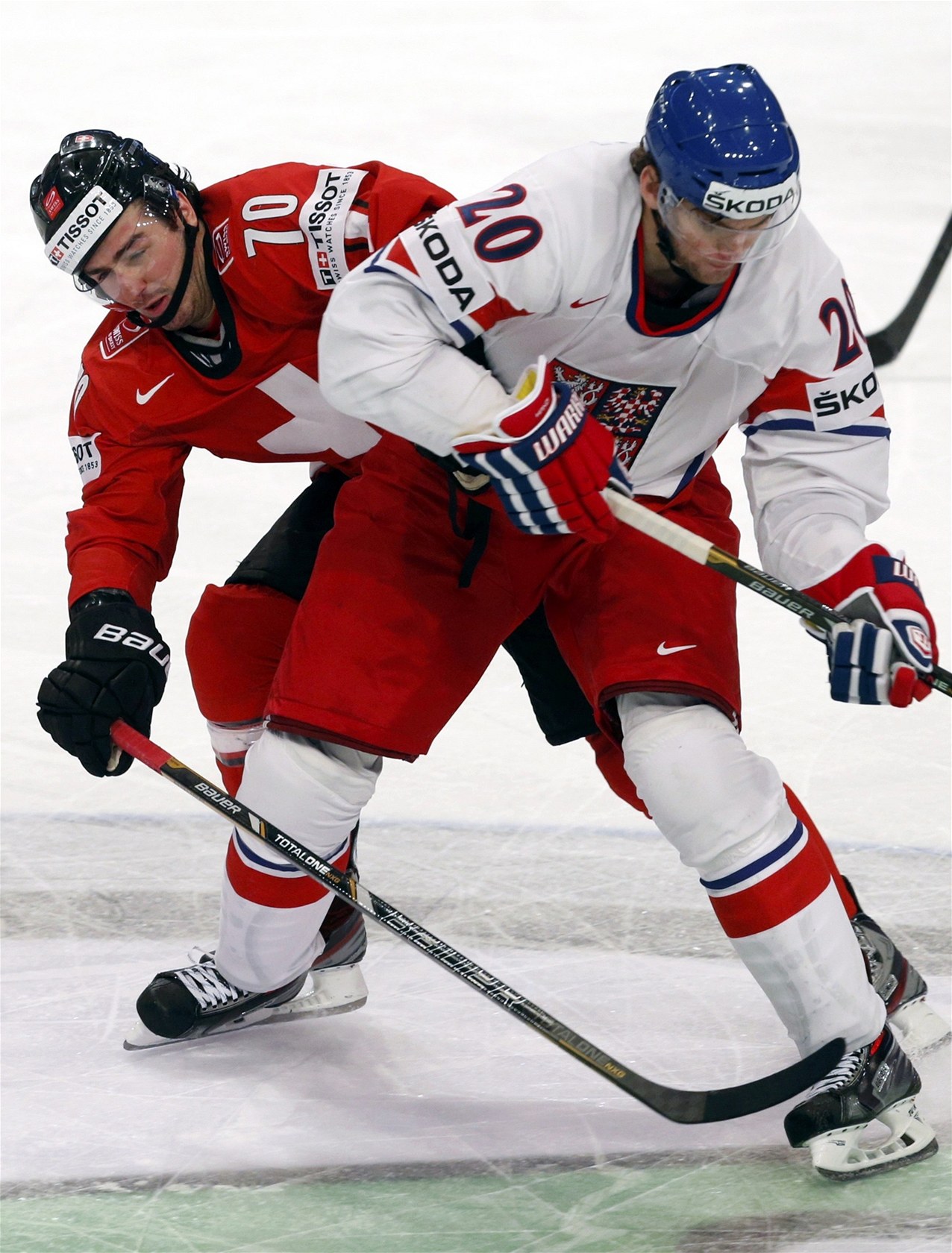 Martin Hanzal (vpravo) v souboji s Denisem Hollensteinem