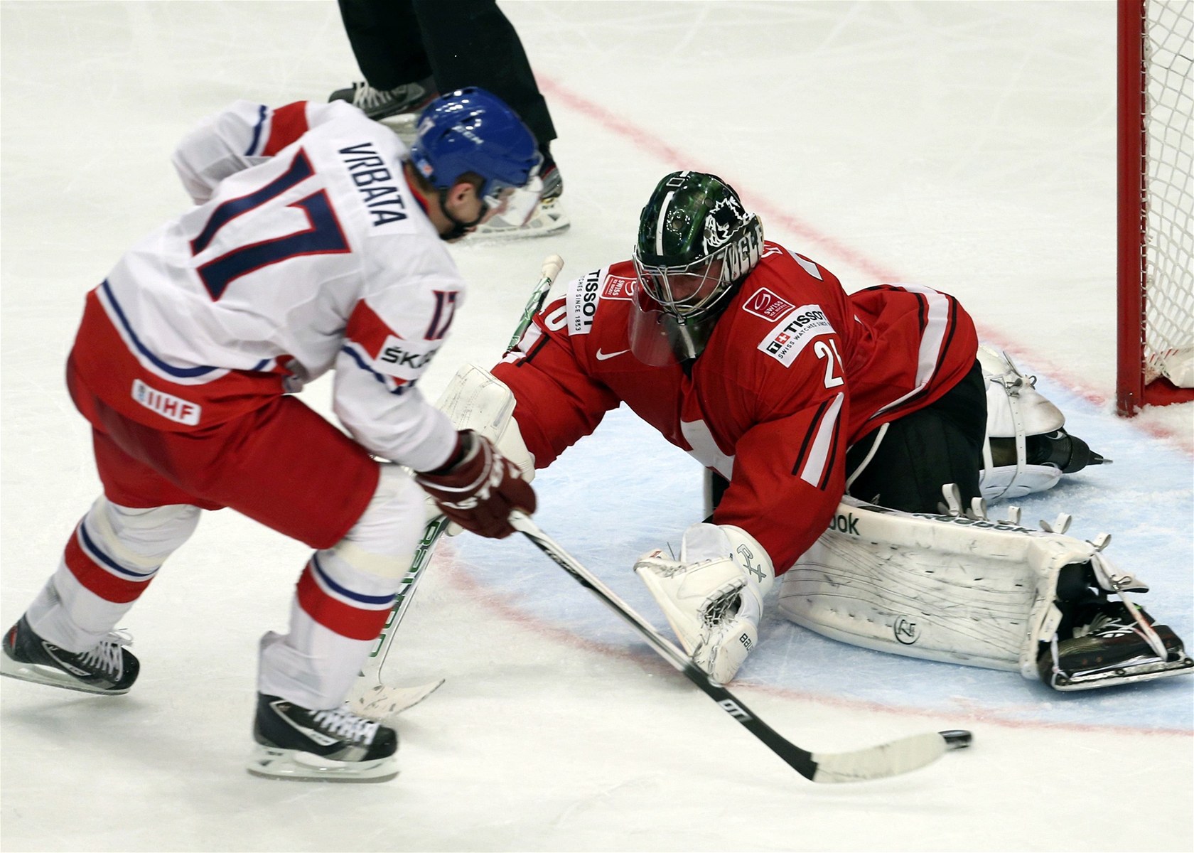 ASPOŇ VYSTŘELIT. Radim Vrbata z českého týmu měl na holi čtvrtfinálové vyrovnání, ale k zakončení se nedostal.