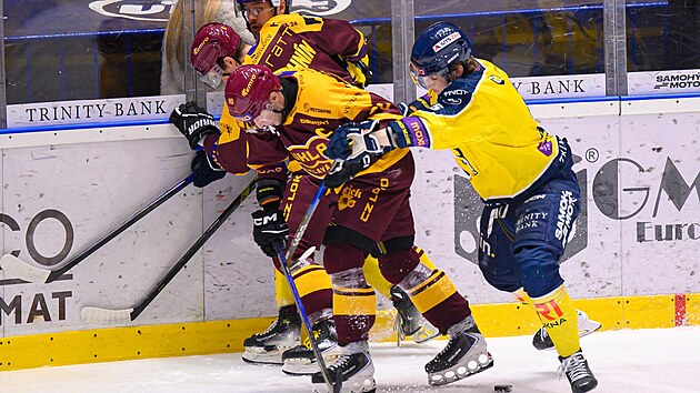 Vedoucí Slavia potvrdila roli favorita i díky dvěma gólům amerického útočníka Jakea Griciuse, který se prosadil ve druhé třetině během 92 sekund, jeho druhá trefa v oslabení byla vítězná. Triumf hostů potvrdil sedm sekund před koncem střelou do prázdné branky Milan Čermák, který si v zápase připsal tři body.