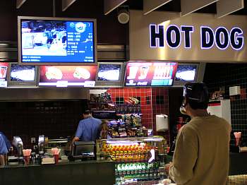 Také utkání Slovensko - Finsko z Ostravy mohli sledovat (obrazovka vlevo nahoře) diváci v Sazka Aréně během zápasu Česko - Německo. |