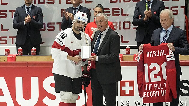 Útočník Davosu při 17. turnajové účasti (rovněž rekordní) překonal německého obránce Uda Kiesslinga a stal se hráčem s nejvyšším počtem zápasů na MS.