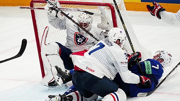 Od druhé třetiny nastoupil do francouzské branky Papillon a inkasoval již po 91 sekundách. V přesilovce jej překonal střelou mezi betony aktivní Gauthier. Následně se ale Papillon překonával a zlikvidoval několik velkých šancí Američanů. Pohotovým zákrokem zmařil možný hattrick Gauthiera, poradil si s nájezdem Mazura a ve 37. minutě mu pomohla horní tyč po Thrunově střele.
