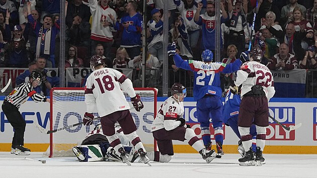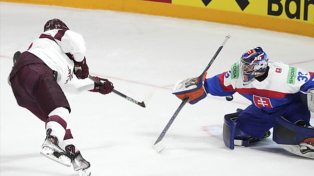 Po vyloučení Okuliara mohl vyrovnat Balcers, ani Škorvánek se ale nenechal zahanbit a uhájil těsné vedení Slováků. Jenže pouze dočasně. Ve 37. minutě už po skončení přesilovky rozjásal Lotyše Rodrigo Abols, který s přehledem proměnil samostatný únik.