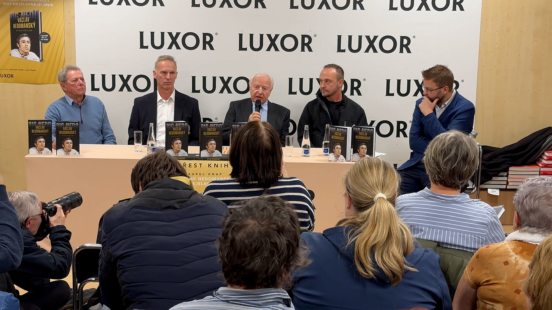 Knihu Václav Nedomanský - Můj největší únik pokřtil jeho autor a dlouholetý redaktor MF DNES Karel Knap v pražském Luxoru i za přítomnosti Dominika Haška nebo Jana Klapáče.