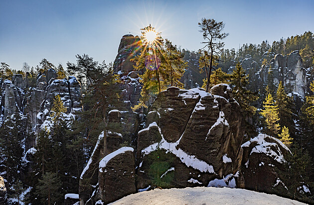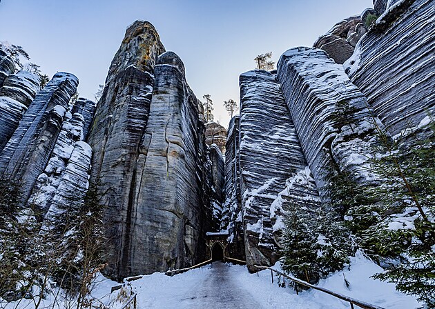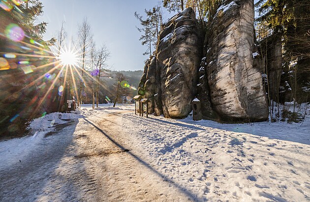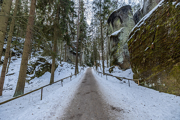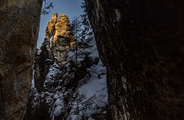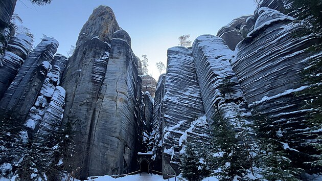 Zima, sníh a led čarují ve skalním městě v Adršpachu na Náchodsku. Tmavé pískovcové věže ční do stometrové výšky, dole bublá průzračná Metuje. Návštěvníci teď mají šanci zažít přírodu v tichu. Oproti létu, kdy se na okruhu protočí až několik tisíc turistů denně, jich sem nyní míří jen desítky.