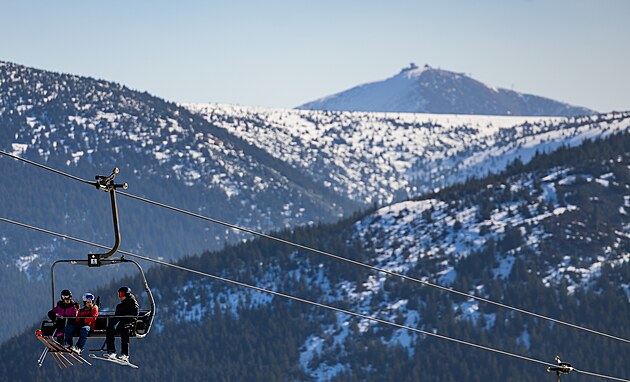V Krkonoších je znát, že ještě poslední týden pokračují jarní prázdniny, turistů je na svazích stále dost. Na konec sezony to na horách zatím vůbec nevypadá. Slušně zaplněné jsou i restaurace a bary.