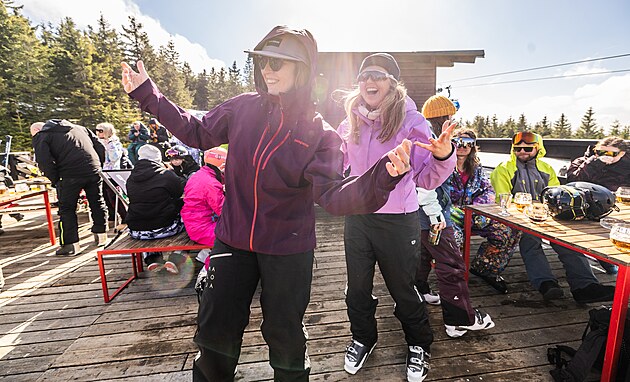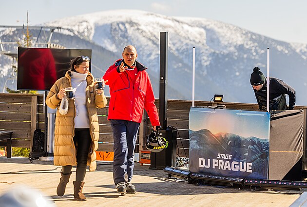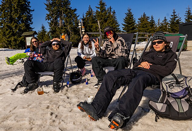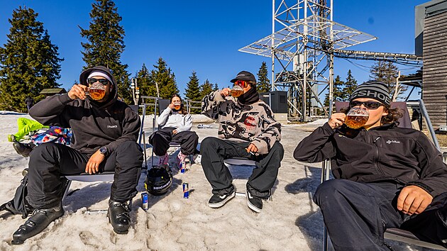 Pivo, koktejly, pizza, špagety, jen co je libo. V Krkonoších už se víc relaxuje na slunci, než lyžuje.