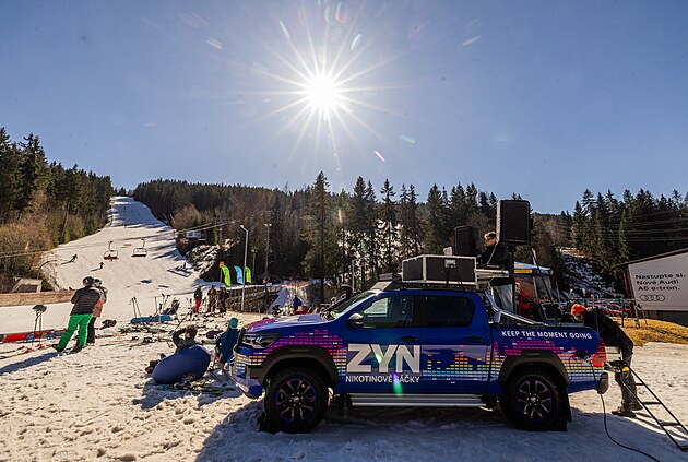 Mnozí lyžaři už letos pověsili lyže na hřebík, ale pro jiné je to teprve nyní ten správný zážitek. Ve Špindlerově Mlýně spojili jarní lyžovačku pod modrou oblohou s menším hudebním festivalem. Rekreanti se vlní přímo u sjezdovek.