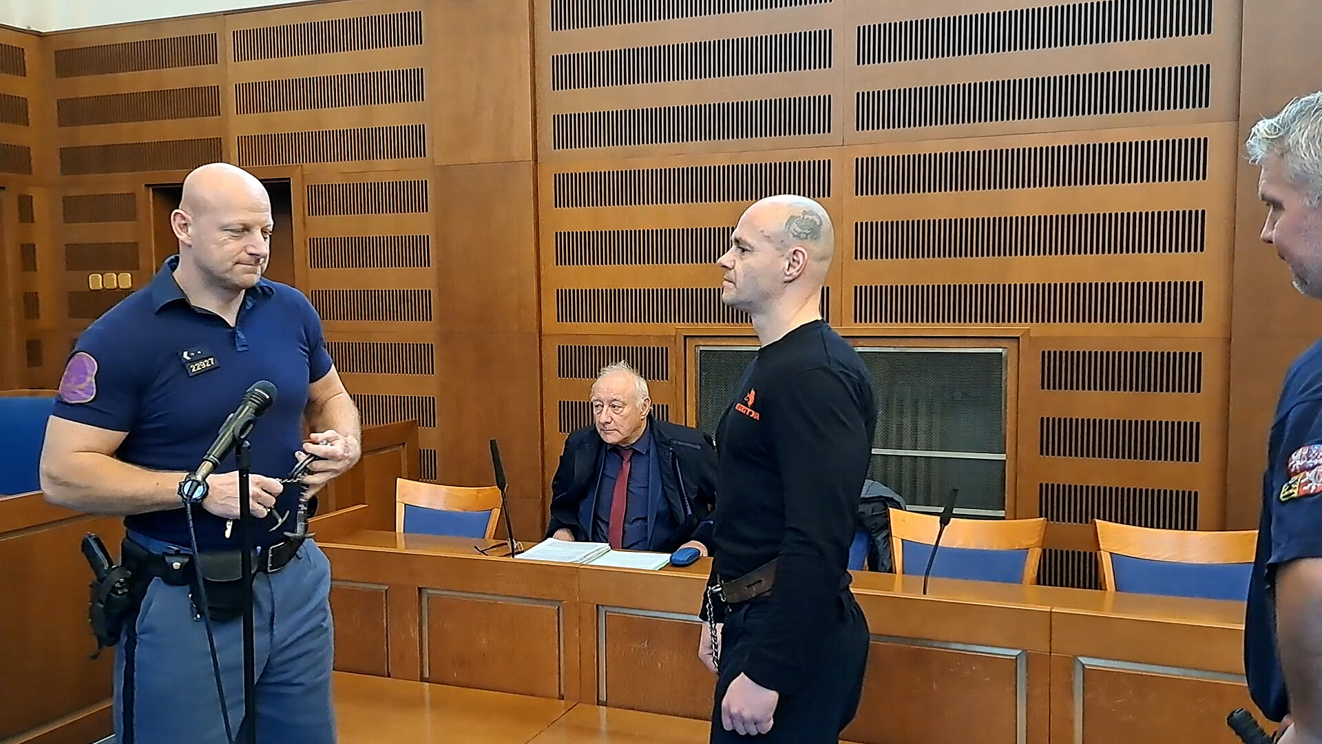 Jakuba M. obžalovaného z výtržnictví, nebezpečného vyhrožování, těžkého ublížení na zdraví i pokusu vraždy do síně přivedli z vazby. Po celou dobu procesu skoro nic neřekl a nejevil známky emocí. Prostřednictvím obhájce prohlásil vinu ve všech bodech obžaloby. Státní zástupkyně i předseda senátu toto prohlášení následně akceptovali.