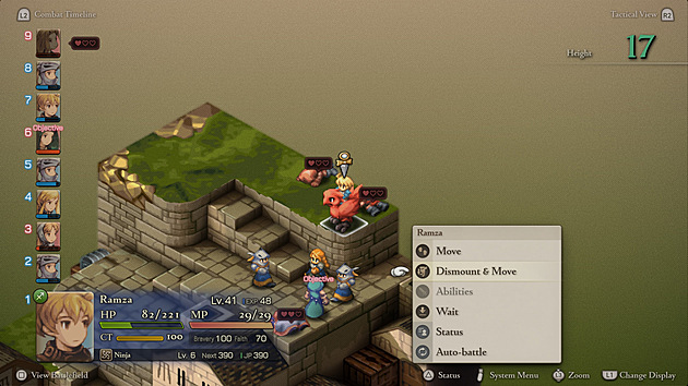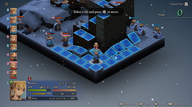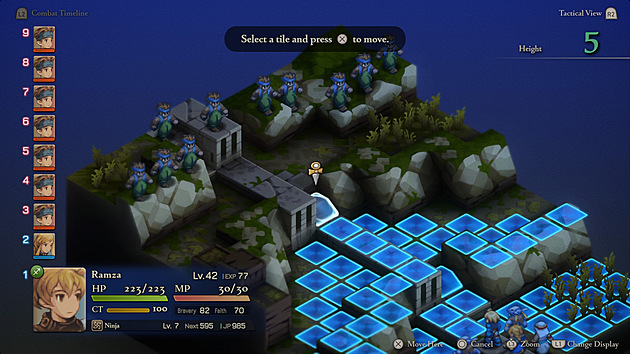 Výrazným benefitem je posuvník pro zrychlení děje, potažmo aktivace nepřátelských sil v bojích, které mají oproti Tactics Ogre komornější rámec. Na o poznání menší ploše, rozdělené na čtverečky, po nichž se postupně přemisťují a strategicky pozicují vybraní aktéři, kvituji komfortnější ovládání a rozhraní, ve kterém nechybí obrazová lišta vypovídající o pořadí tahů. Povedený je i nápad, že si můžete dávkovat náhodné souboje – kvůli zvyšování úrovně a vylepšování dovedností jednotlivých členů vaší party – podle vlastního uvážení a v lokalitách, jež se vám víc zamlouvají.