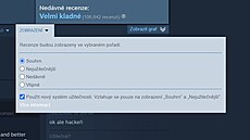Jak to celé bude fungovat ukáže až praxe, za mě je odfiltrování stále se opakujících hlášek, ASCII obrázků nebo rádobyvtipného žvanění na nesouvisející témata (například čtvrtou nejlajkovanější recenzí v češtině na CS:GO je recept na hovězí guláš) skvělou novinkou.