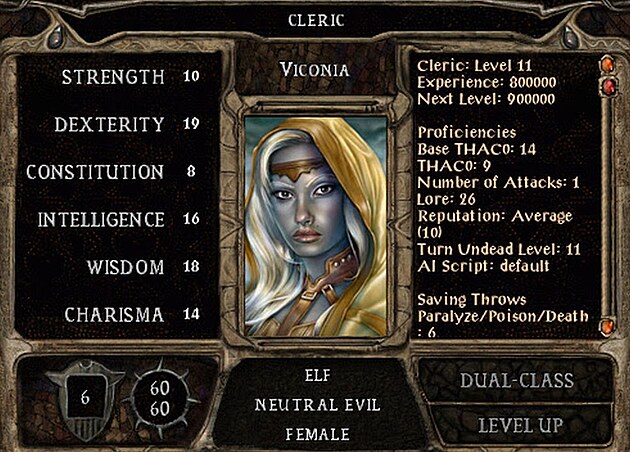 Vzhledem k tomu, že ve světě Forgotten Realms panuje bezostyšný rasismus, už jen její přítomnost v partě mnoho věcí zkomplikovala. Ale nevadí, opravdová láska i špatné hody dvacetistěnkou přenáší. Já ve Viky od začátku viděl její citlivou povahu a svým asertivním přístupem si nakonec získal její srdce. Znáte to, nesmíte moc tlačit na pilu, ale ani si nechat kálet na hlavu. Nakonec z toho byla veliká mnoholetá láska, povila mi syna, o kterého se příkladně starala a když nakonec zemřela rukou úkladného vraha, její poslední slova patřila mě (Aby bylo jasno - ne, nenechal jsem se unést fanfikcí, tak to tehdy vývojáři skutečně napsali).