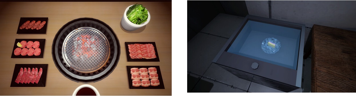 Yakiniku simulator (simulátor japonského grilování masa) a Dishwashing Simulator (simulátor mytí nádobí):