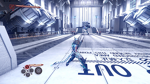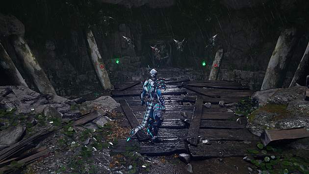 Nejnápaditější je rozhodně Kage Hiruko, což je takový šikovný temný arzenál. Yakumova sekundární zbraň jsou menší vrhací nože kunai. Vrhací hvězdice z arzenálu jsou velikostí obří. A navíc z něj můžete házet i granáty. Jakmile pak aktivujete formu Bloodraven, narostou vám obří robotické ruce s drápy, které trhají nepřátele vedví i na více kusů. Je to šílené a excentrické? Nepochybně. Zároveň je ale používání těchto drapáků nesmírně cool.