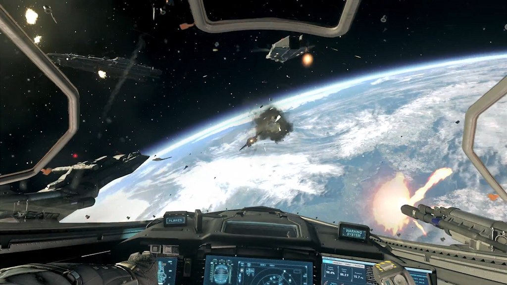 Misí v nulové gravitaci není moc a je to dobře. Můžete se volně pohybovat i natáčet a máte k dispozici vystřelovací hák, jímž se lze přitáhnout k pevnému povrchu. Podobná akce však baví spíš jen kvůli změně tempa a potřebnému zpestření hry. Souboje ve vesmírných stíhačkách jsou na tom o něco lépe. Na rozdíl od mnohých předešlých dílů máte plnou kontrolu nad pilotováním vaší stíhačky a nahánění s nepřátelskými piloty představuje zábavnou, byť poněkud jednotvárnou změnu od klasické CoD hratelnosti.