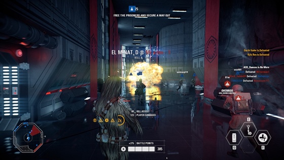 Pochvalu zaslouží tvůrci za velmi dobrou optimalizaci. Je na co koukat a hra šlape ještě o fous lépe než beta (tedy snad až na hlášku, kdy mě hra v menu odpojuje ze serverů, přímo ve hře nikdy). Spokojen jsem i s obsahem. V Battlefieldu 1 hraji výhradně Operace, tedy obří mapy pro maximální počet hráčů, ve SW BF 2 jsem se tak především věnoval obdobnému režimu Galactic Assault. Jedna strana brání, druhá útočí, fronta se při úspěchu útočníků postupně posouvá. Map je celkem jedenáct a většina se mi líbí, zejména Yavin 4 a Starkiller Base. Vyloženě mi nesedl pouze příliš otevřený Hoth, kde je cílem ochránit nebo zničit AT-AT.