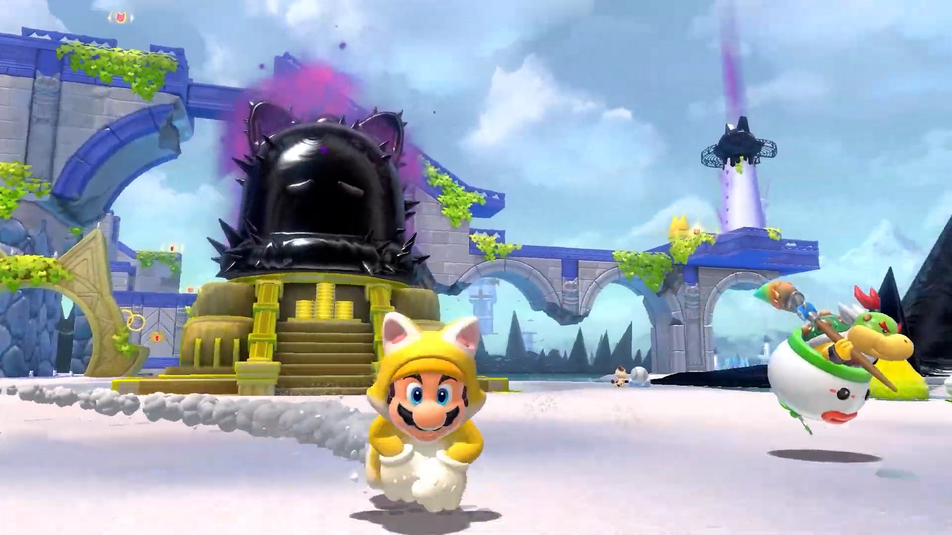 Super Mario 3D World uvedl novou proměnu Maria (a jeho parťáků), kdy se po sebrání zvonečku (Super Bell) aktivuje kočičí forma. Ta propůjčuje nové schopnosti, například lezení po zdech. Vedle tradičního hopsání tu ovšem jsou i různé minihry, například jízda po řece na zádech dinosaura Plessie nebo puzzle s kapitánem Toadem, z nějž pak vznikla samostatná hra Captain Toad: Treasure Tracker.