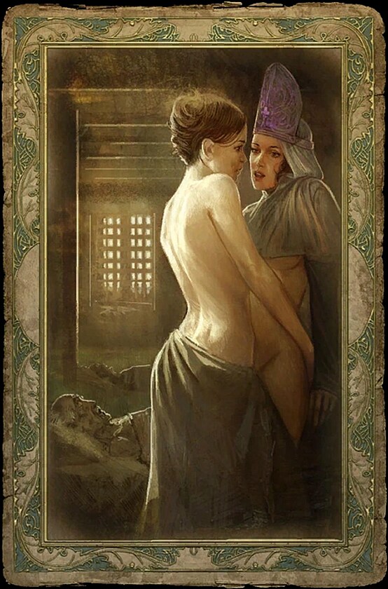 Všechny sběratelské kartičky během jednoho průchodu jednoduše nelze získat. Podle toho, komu svěříte do výchovy sirotka Alvina, dostanete možnost zopáknout si postelovou scénu s Triss…