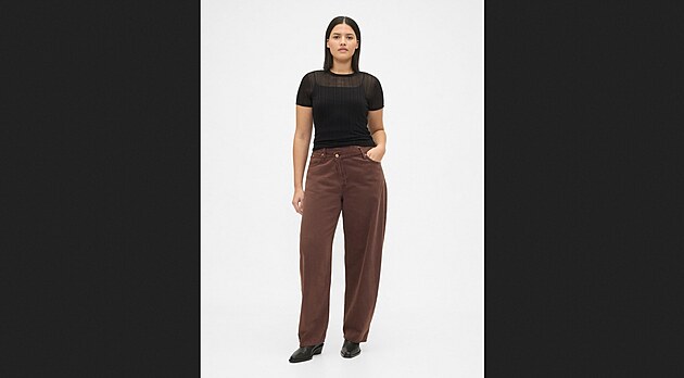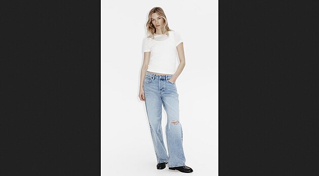 Modrá a všechny její odstíny k džínovině patří, ale není důvod se zaměřovat jen na klasiku. K dostání jsou i denimové kalhoty v nude odstínech, které spojují neformálnost s kapkou elegance. Tyto jsou ve střihu barrel – mají balónový střih a maskují nedokonalosti stehen. Cena 1999 Kč