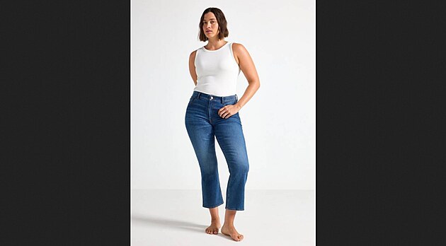 Majitelky postavy ve tvaru jablka nebo hrušky si jistě oblíbí bootcut džíny. Ty jsou v oblasti stehen úzké a od kolem se postupně rozšiřují. To má za cíl jediné – vyvážit proporce těla. Vyšší pas se pak postará o zamaskování břicha a má zeštíhlující efekt. Cena 1299 Kč