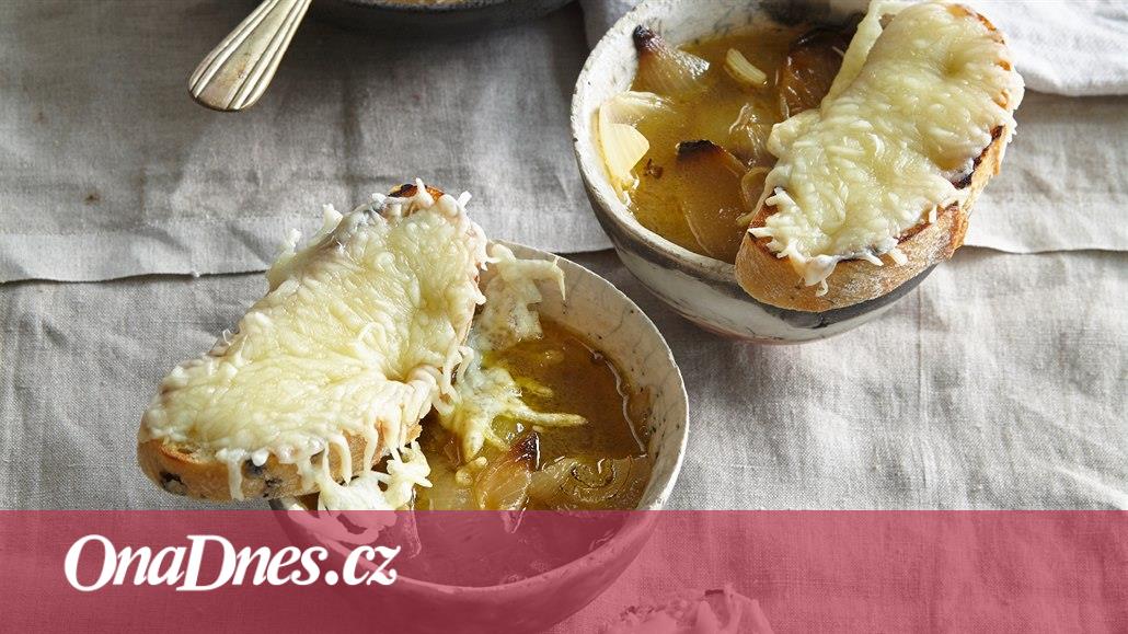 3. Krajíce chleba opečeme po jedné straně, pak je otočíme a posypeme sýrem. Cibulačku rozdělíme do misek, položíme na ni krajíc chleba a zapečeme pod grilem, až se sýr roztaví. Ihned podáváme.