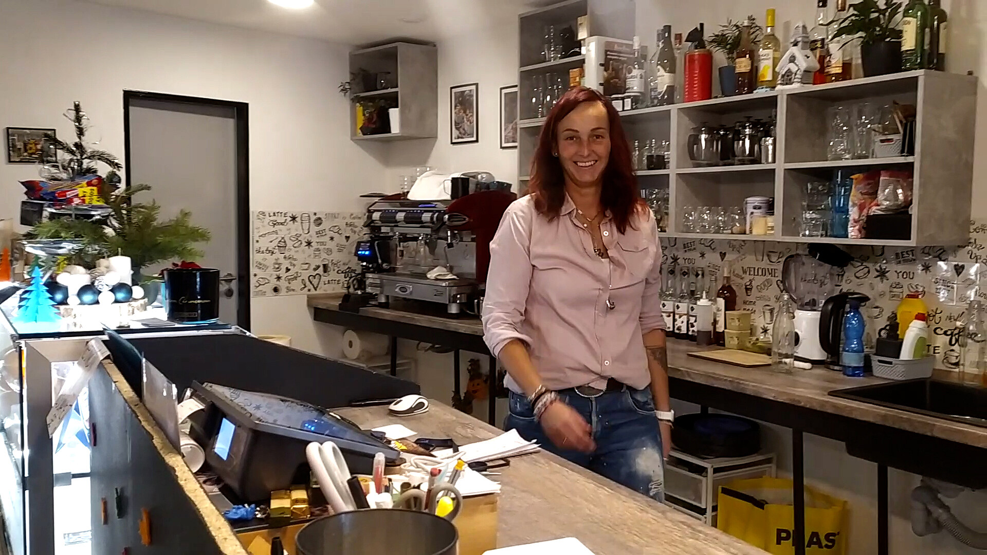 Vybudovali jsme to za šest neděl. Mám jednoho člověka, který je prostě neskutečně úžasný. On spí asi tři hodiny denně, aby všechno stihl. Já ho prostě obdivuji. On nejenže je vám schopný tady udělat příčku, ale namaloval všechny plány, udělal dokonce i truhlářské práce. Protože když jsem se ptala truhlářů u nás, jestli by byli schopní pult udělat, řekli si o horentní sumu.