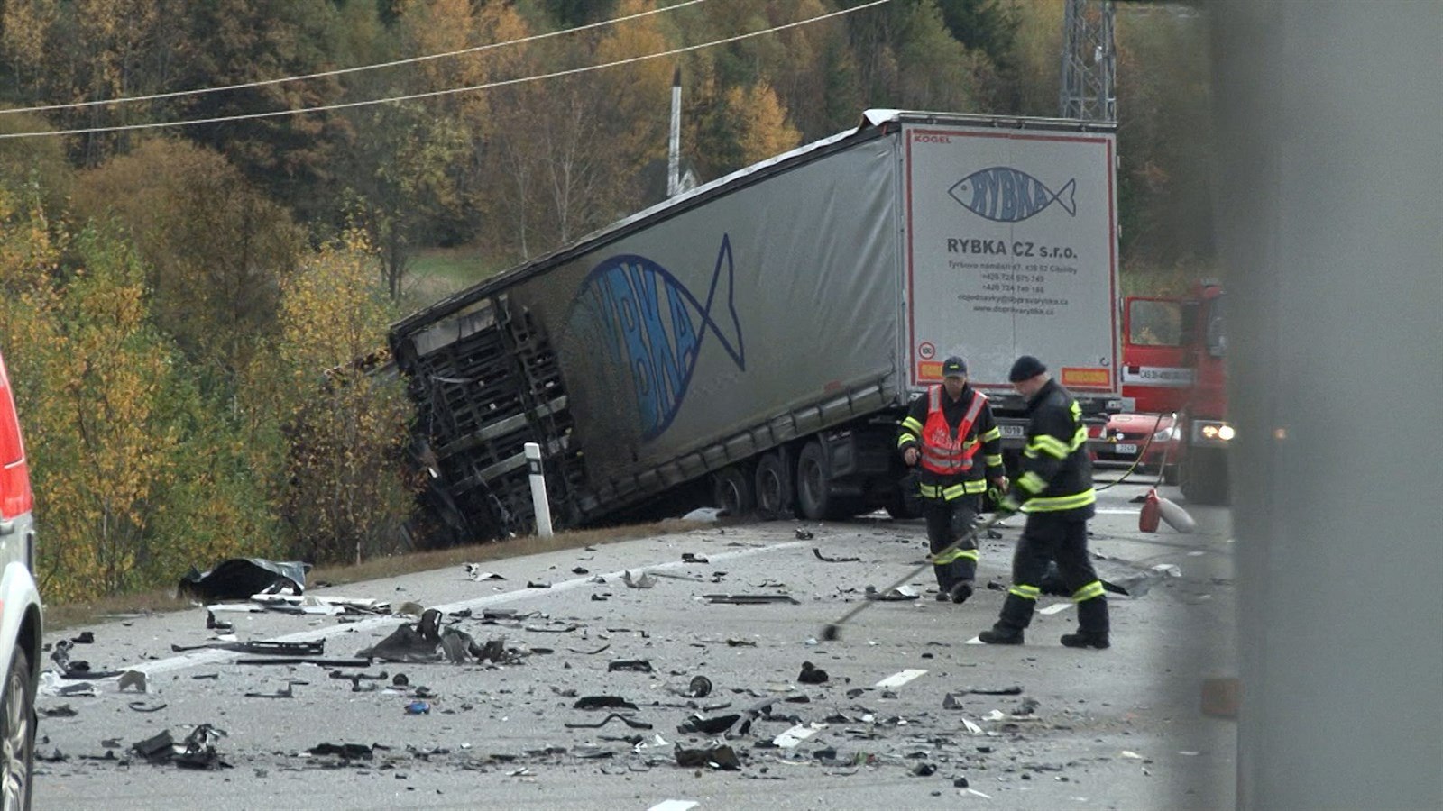 Nutná však byla přítomnost hasičů. Kamion po nehodě částečně sjel ze silnice a začal hořet. „V plamenech byla kabina vozu, uhasili jsme ji vysokotlakým proudem,“ řekla mluvčí hasičů na Vysočině Petra Musilová.