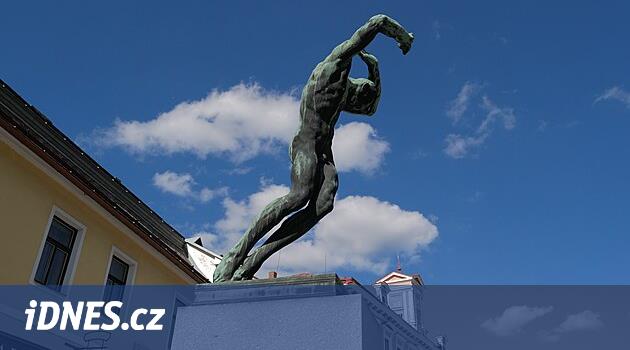Dívka myjící si prs. Městské lázně krášlí akt od známého sochaře Jana Štursy |