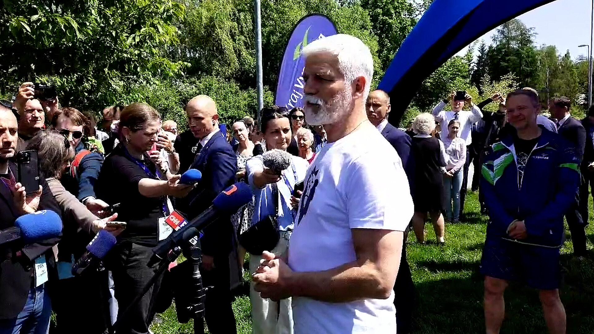 Běh se však Pavlovi příliš nevydařil. Po pár metrech se chytil za nohu a do cíle doběhl pomalu. Prezidenta nejspíš chytila křeč. Po pár minutách už opět normálně chodil. Na střelnici mu to šlo o poznání lépe.