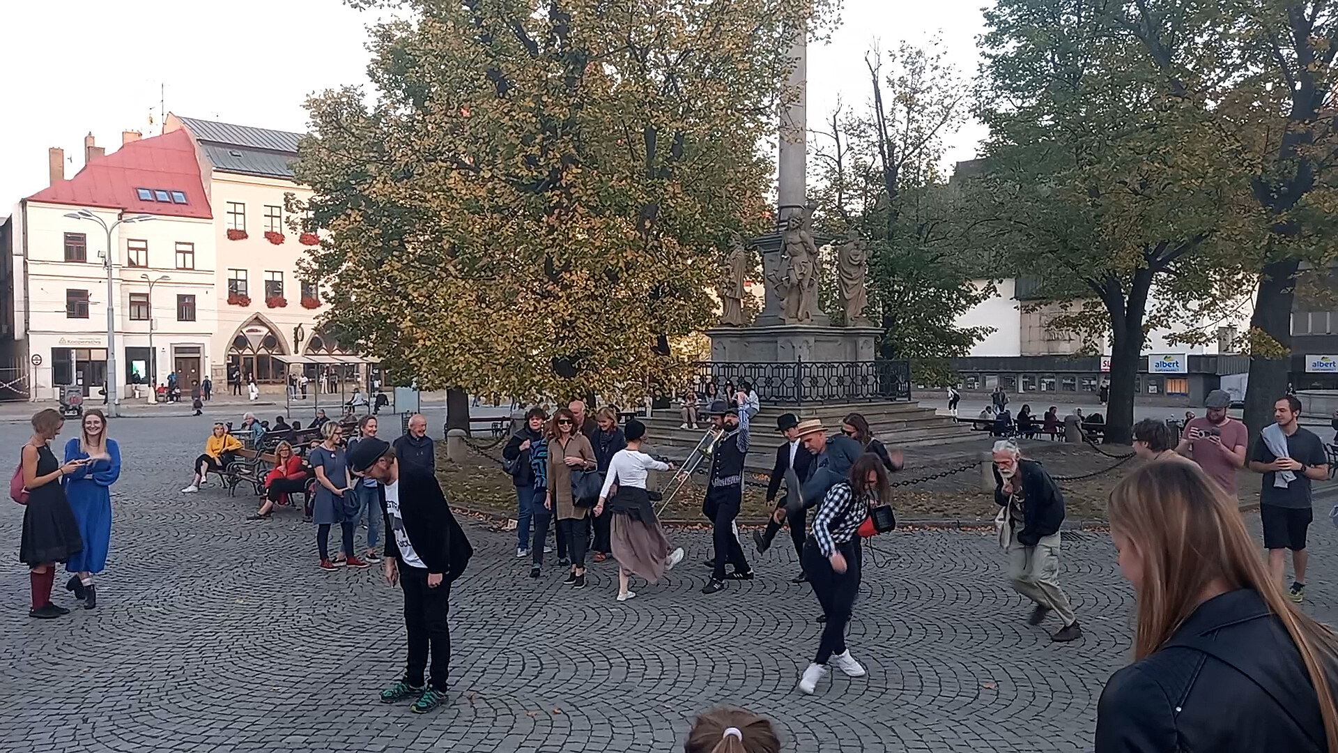 Úderem 18. hodiny a za zvuku pozounu se od morového sloupu na Masarykově náměstí vydal tento netradiční průvod ke Klubu Zacheus v Komenského ulici 20, který působí v rámci tamní fary Československé církve husitské.