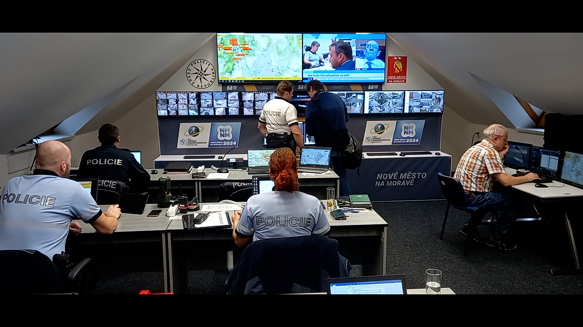 Půdní prostory, které za normálních okolností policisté z obvodního oddělení v Novém Městě na Moravě využívají jako posilovnu, se po dobu konání aktuálního mistrovství světa v biatlonu proměnily ve velín. Nejen během soutěžních dní z něj velitel bezpečnostních opatření spolu se svým štábem koordinuje práci policie.