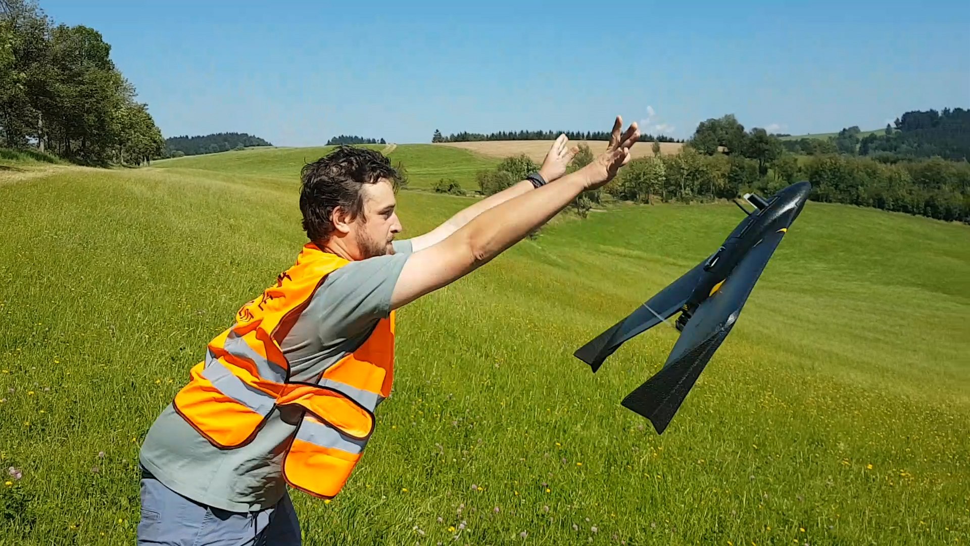 „Celkem snímkujeme plochu o velikosti 250 hektarů. Zhruba v polovině práce dron přistál, abychom mohli vyměnit baterie a zkontrolovat trasu,“ přiblížil pilot dronu Petr Klápště, než stroj pustil proti větru znovu do vzduchu.