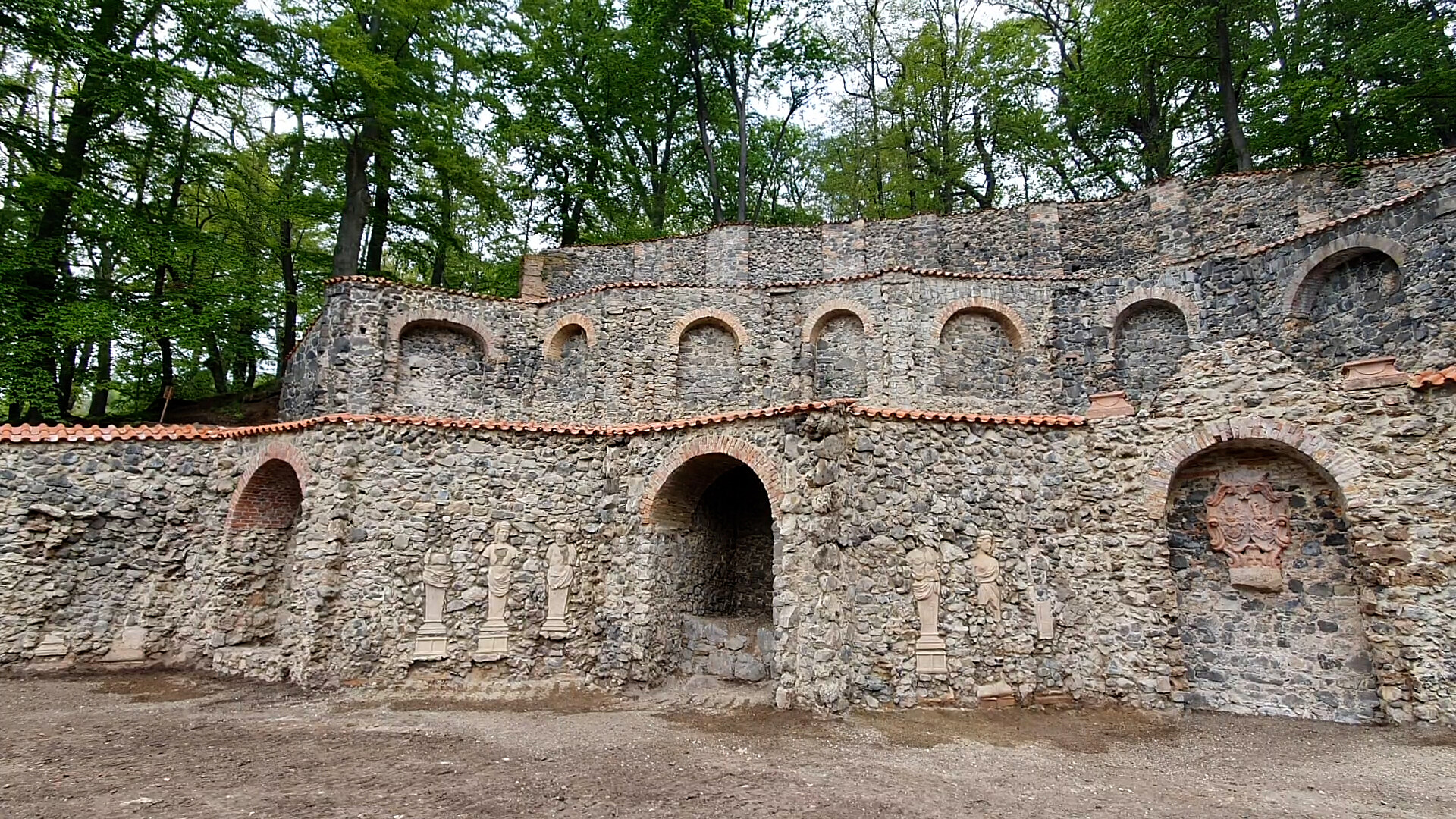 Na vršku, kde je umístěný thatron, byla také vodní kaskáda a sklepy, které celý kopec protínaly skrz naskr. „Je to prvek protoromantismu, který není svým rozsahem u nás, ale ani na sever od Alp obvyklý,“ řekl kastelán.
