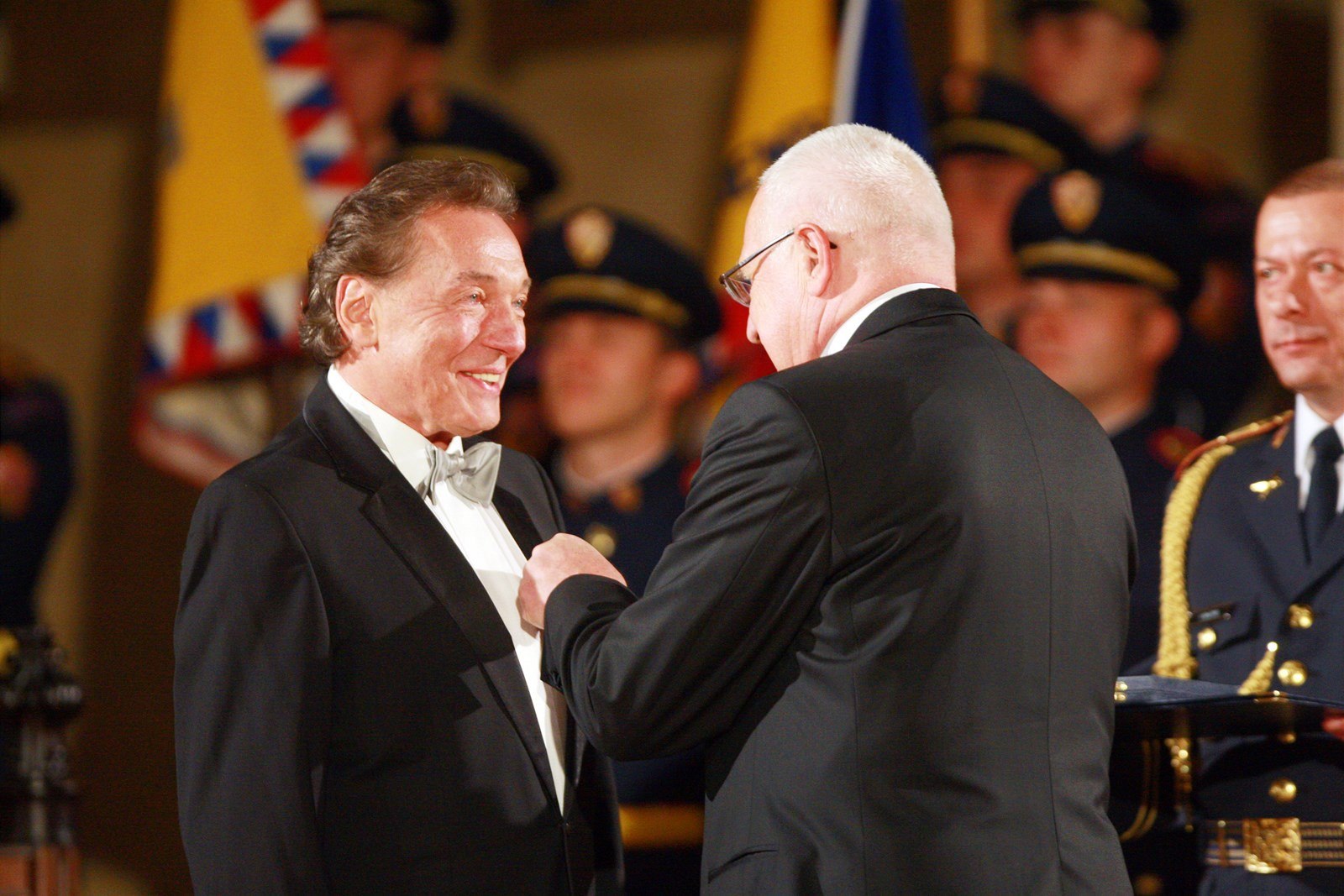 Zpěvák Karel Gott dostal od prezidenta Václava Klause medaili za zásluhy. (28. října 2009)