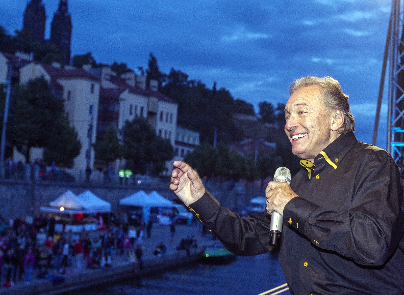 Karel Gott při slavnostním zahájení vysílání internetové televize Playtvak.cz na pražské náplavce (21. června 2015)