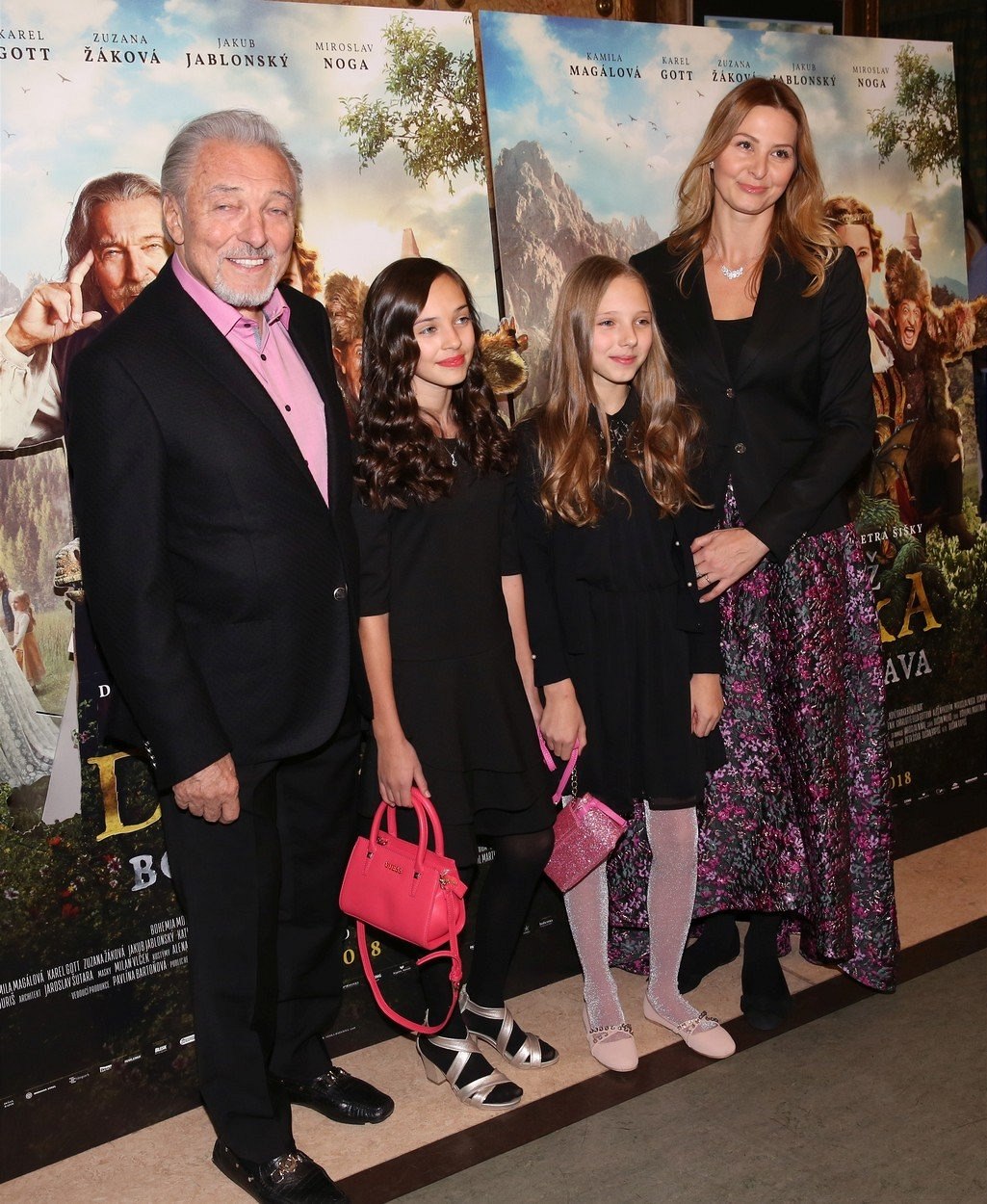 Karel Gott s manželkou Ivanou a dcerami Charlottou Ellou a Nelly Sofií na premiéře pohádky Když draka bolí hlava (2018)