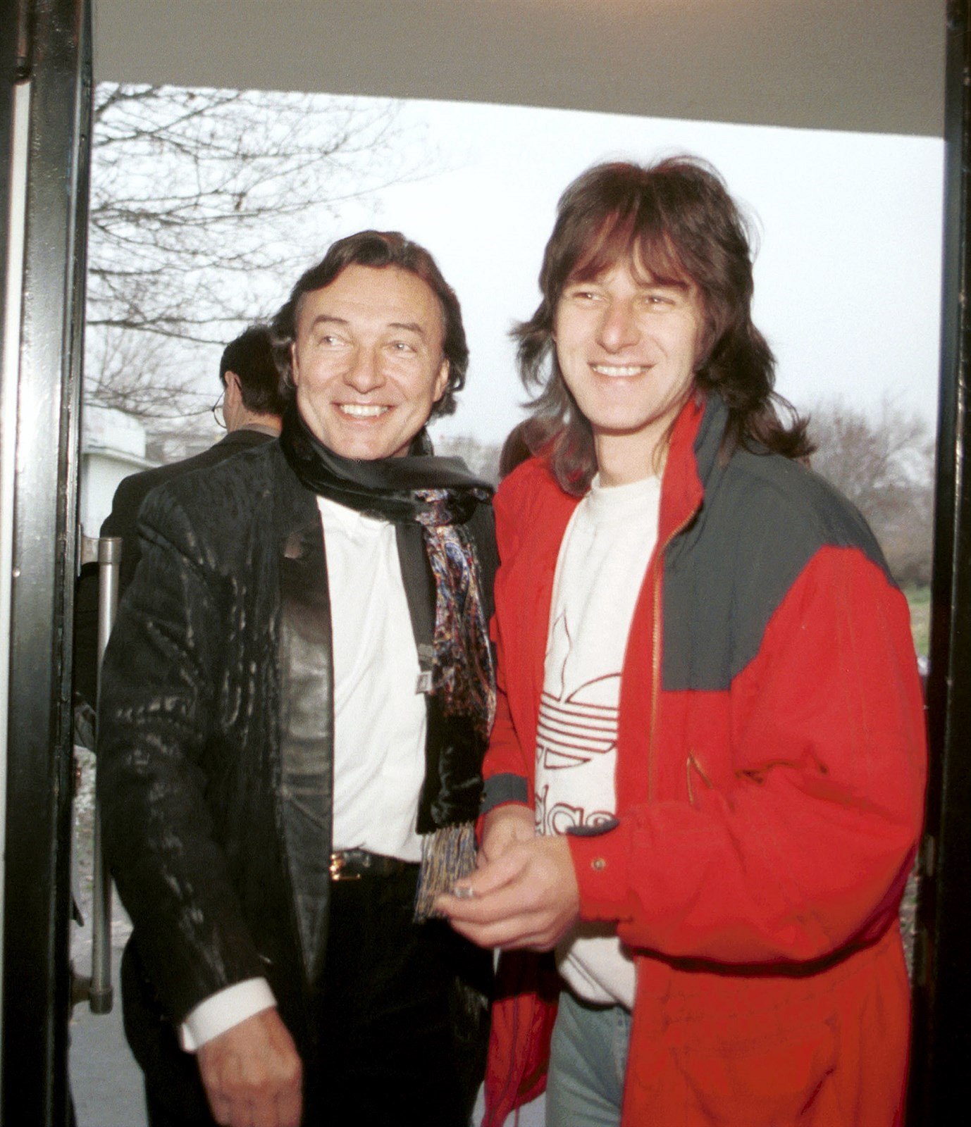 Zpěváci Karel Gott a Pavol Habera před společným koncertem v Bratislavě. (28. listopadu 1996)