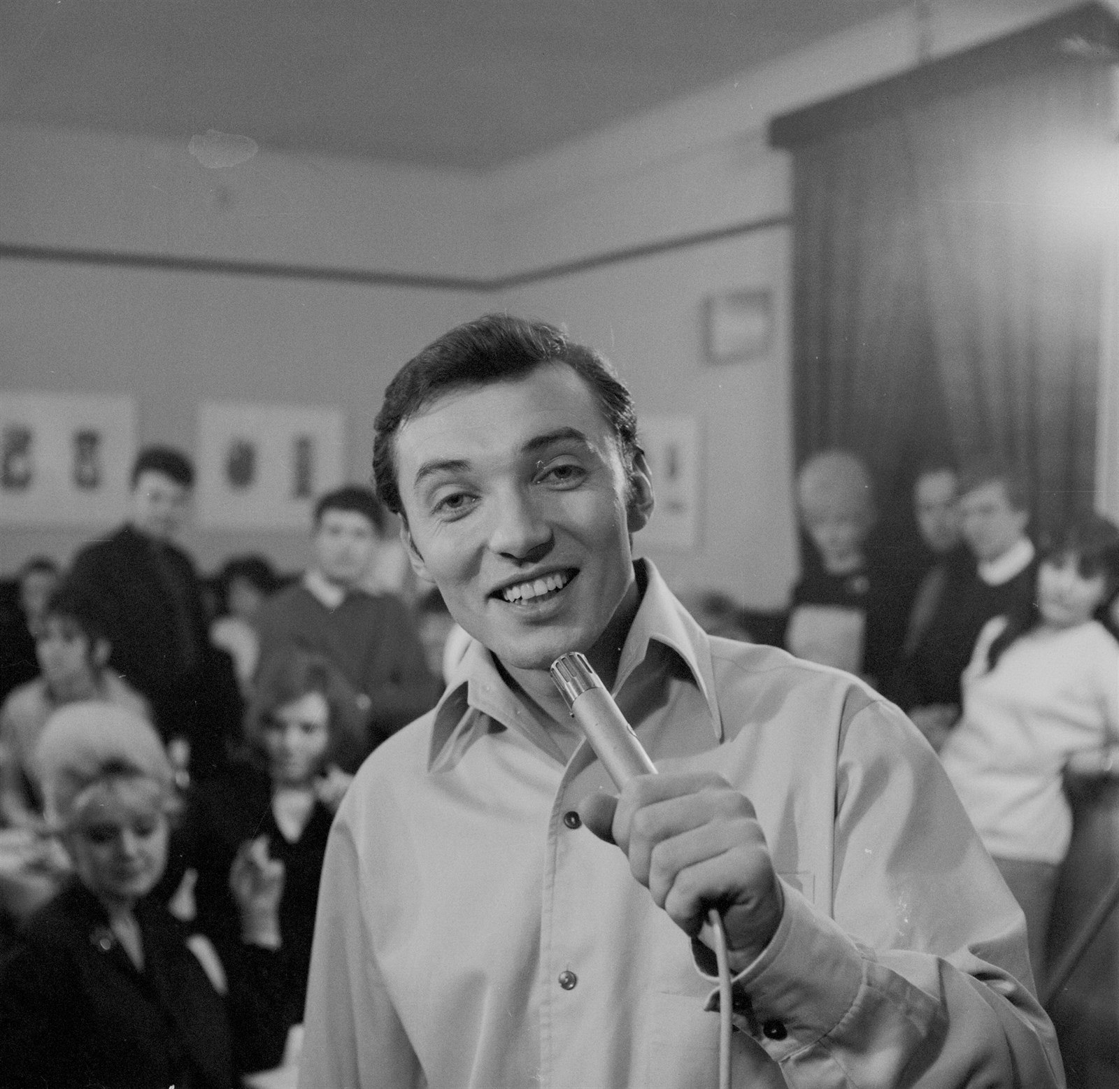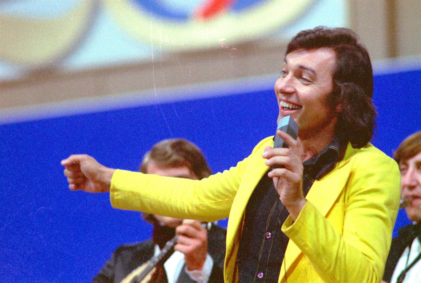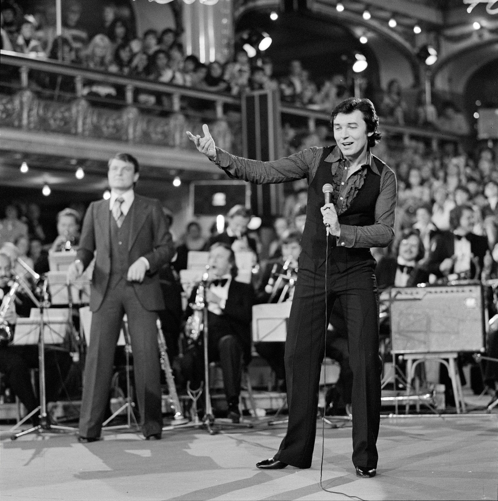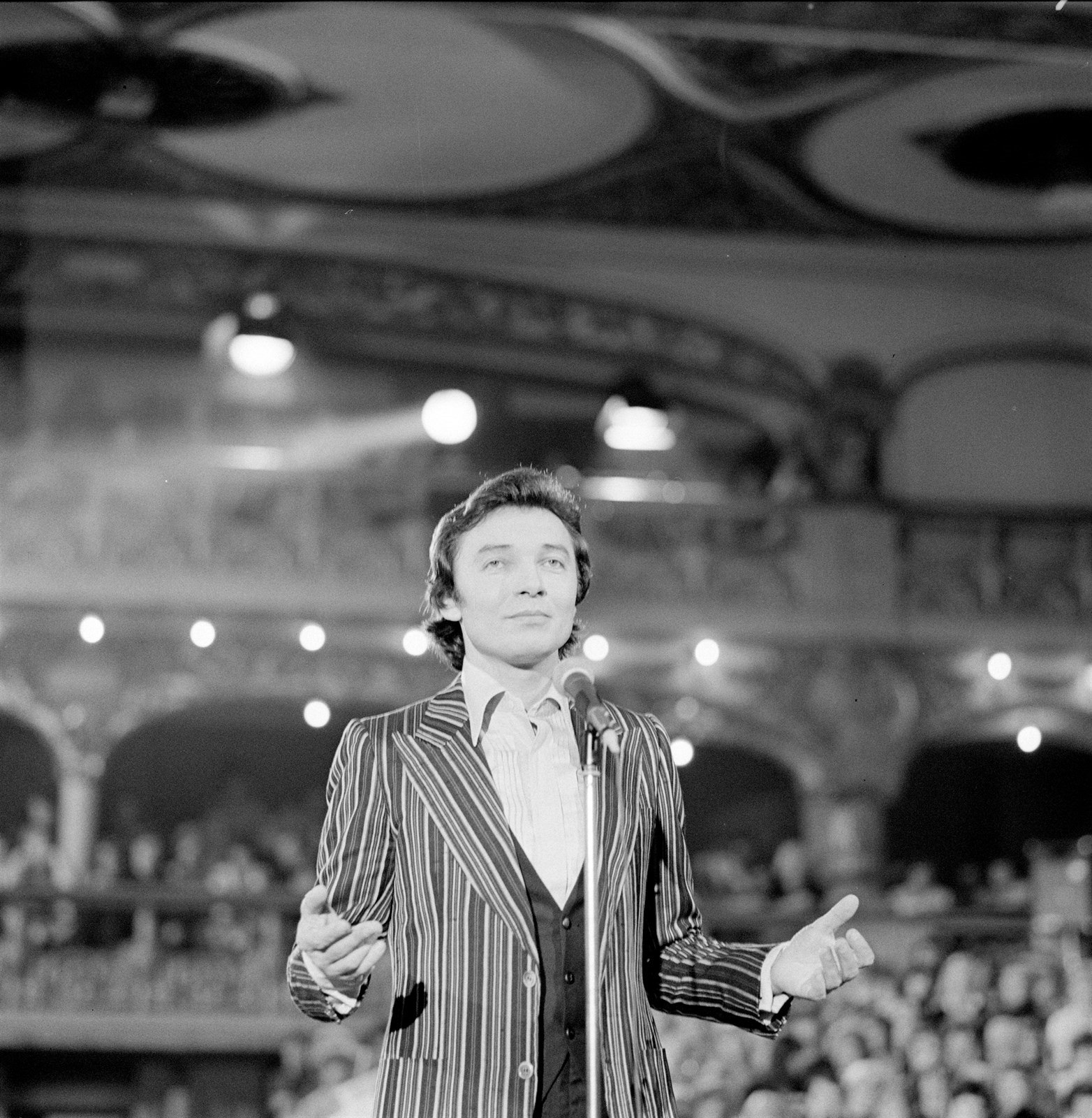 Zpěvák Karel Gott při vystoupení na předvolebním koncertu mladých zpěváků v pražské Lucerně. (listopad 1971)