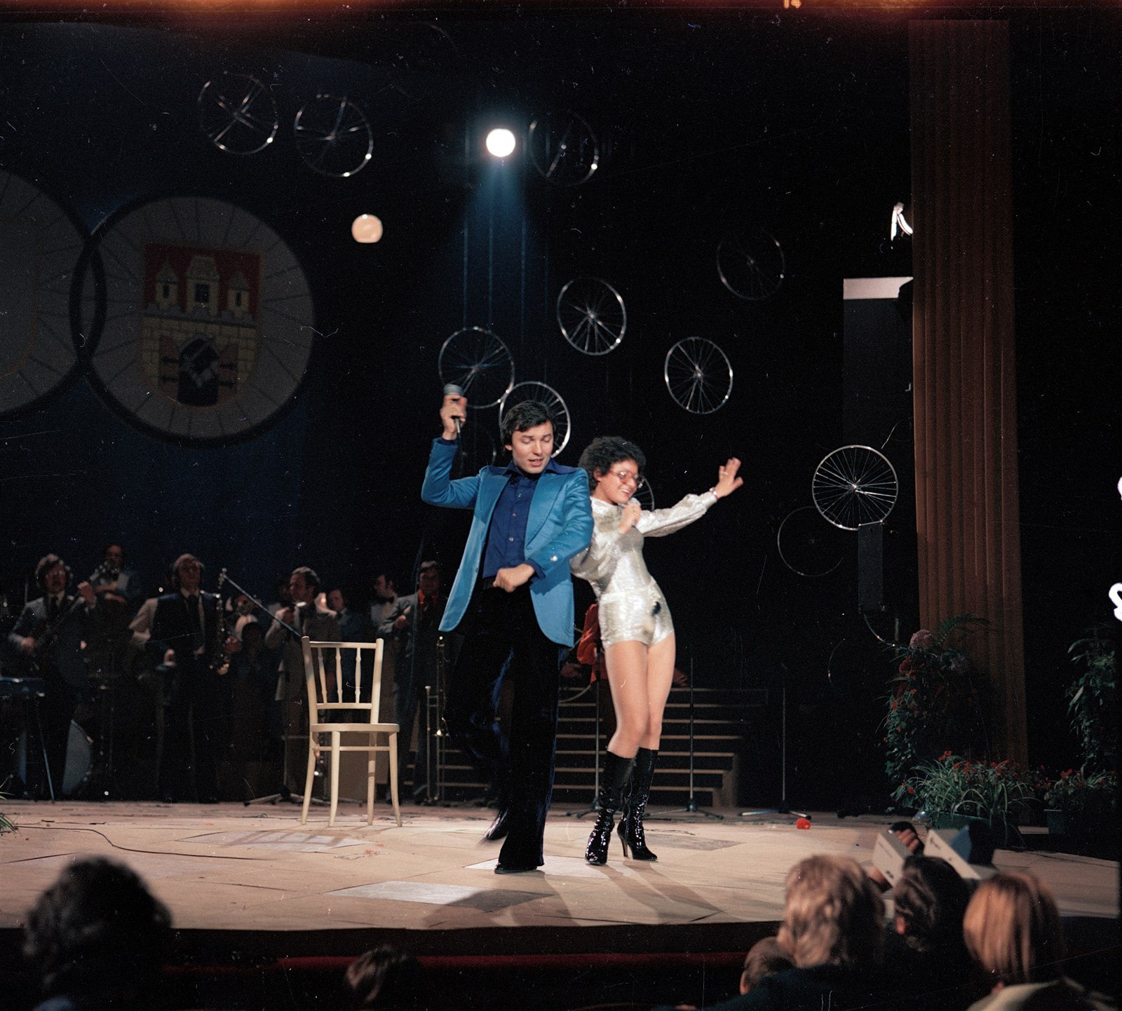 Karel Gott a Jitka Zelenková v pořadu Rytmus v peletonu (1977)
