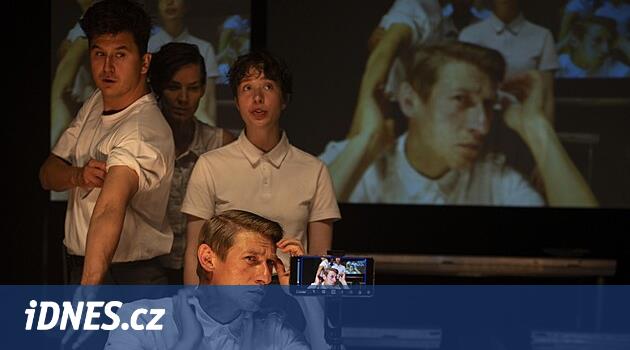 Projekce z mobilu je totiž živě promítána na tři plochy (snad školní nástěnky) zavěšené nad hlavami herců. Prezentace na jevišti tak dostává další, autentičtější rozměr, když herci zabírají své okolí z jiného, intimnějšího úhlu.