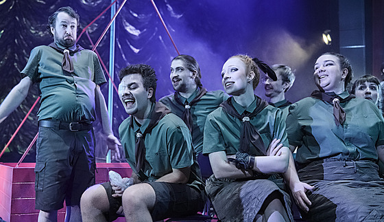 Účastníky skautského tábora, jakož i obyvatele onoho nebezpečně vyhlížejícího světa hmyzu ztvárnili v nejnovější inscenaci Divadla pod Palmovkou Jaroslav Blažek, Barbora Kubátová, Jakub Albrecht, Ivana Wojtylová, Teodor Dlugoš, Kateřina Hrdinová, Tomáš Vardan, Šimon Holiš, hostující Jiří Panzner, Tereza Masaříková a další.