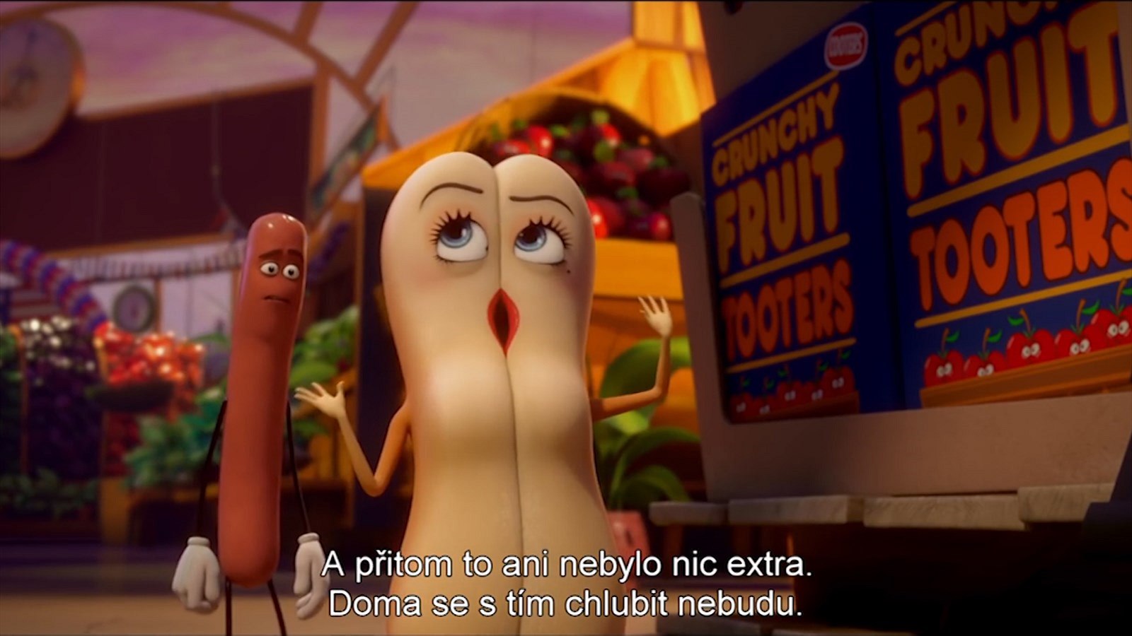 Že se po broucích, rybách, autech či letadlech polidšťují potraviny, je vděčný nápad. Rozhoduje však, jak se s ním naloží. Tady slouží hlavně silácky pubertální konverzaci, v níž se párky těší, jak hluboko „zasunou“ do vnadných žemlí, o intimních představách výrobků pro dámskou hygienu ani nemluvě. V oddělení alkoholu se vesele pije, vševědoucí trvanlivé potraviny léčí hoře z rozumu drogami, „na hřbitově“ vyřazeného zboží se odehraje znásilnění, najde se tu motiv lesbický, homosexuální a ve finále se rozpoutají hromadné sexuální orgie.