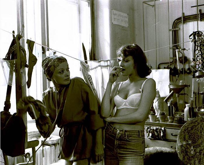 Kariéristka Edita (Jana Brejchová) a Naďa Frýbortová (Zlata Adamovská) ve filmu Mladý muž a bílá velryba.
