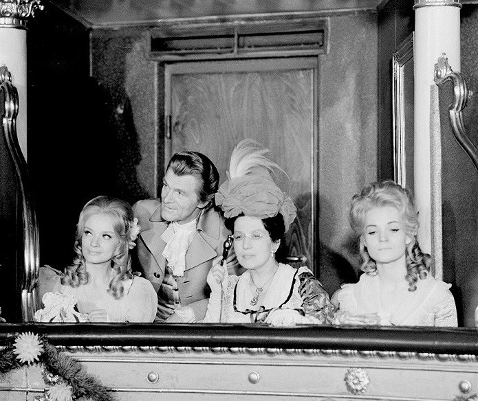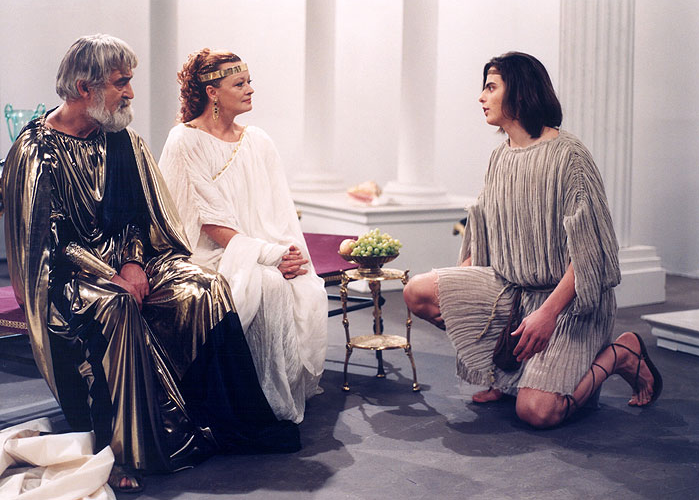 Jana Brejchová se coby královna se svým královským chotěm Hyacintem (Vlastimil Brodský) a dcerou Xenií (Dagmar Patrasová).