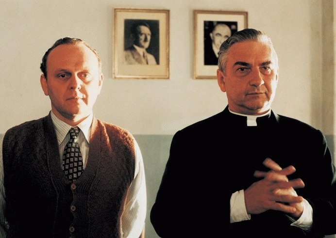 Ve filmu Želary ztvárnil Miroslav Donutil faráře. Po jeho boku stojí učitel v podání Jaroslava Duška.